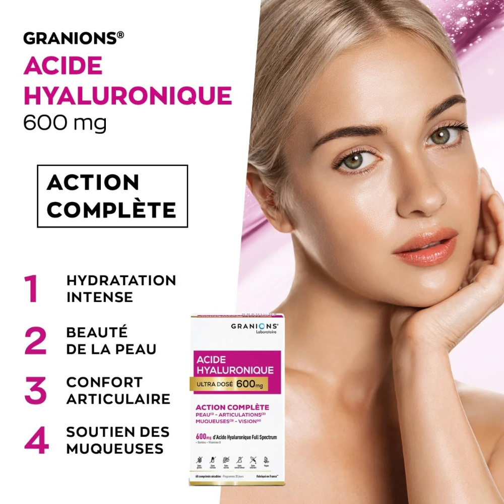 Offrez à votre peau l’hydratation ultime qu’elle mérite et révélez tout son éclat avec Granions® Acide Hyaluronique 600 mg, la formule experte ultra-dosée pour une beauté rayonnante… jusque dans les moindres cellules.