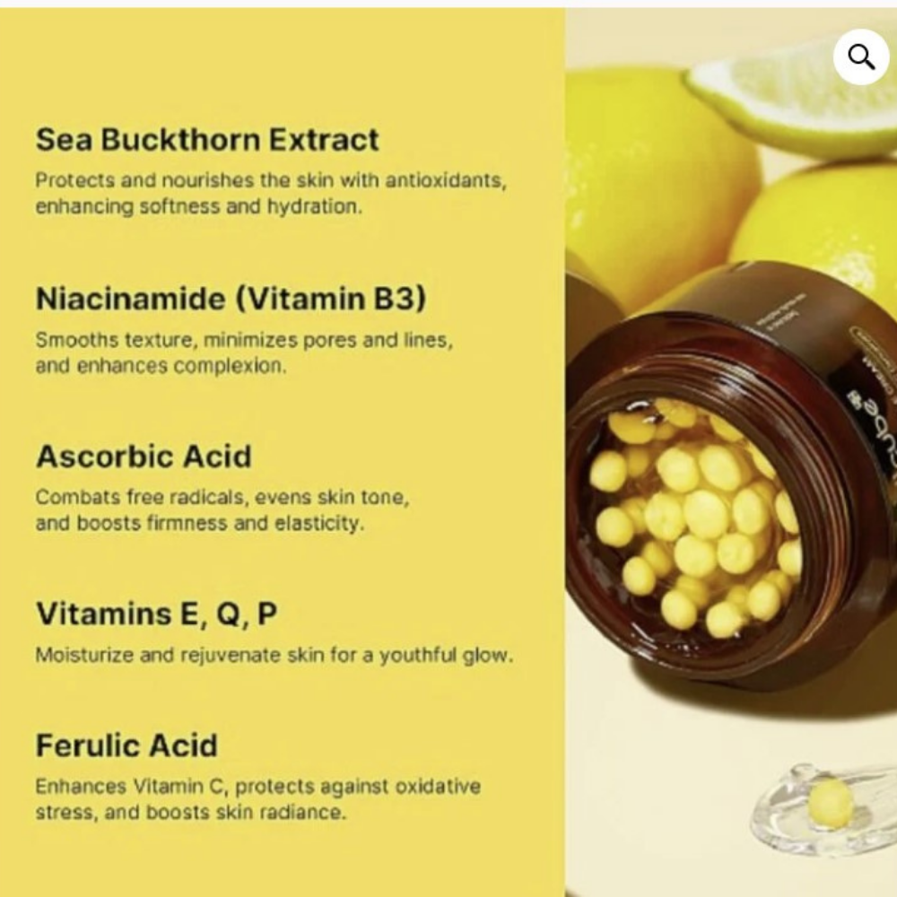 La capsule de vitamine C est composée de vitamine C pure, d'eau d'arbre à vitamines, de niacinamide et de 5 dérivés de vitamine C pour un puissant effet blanchissant.