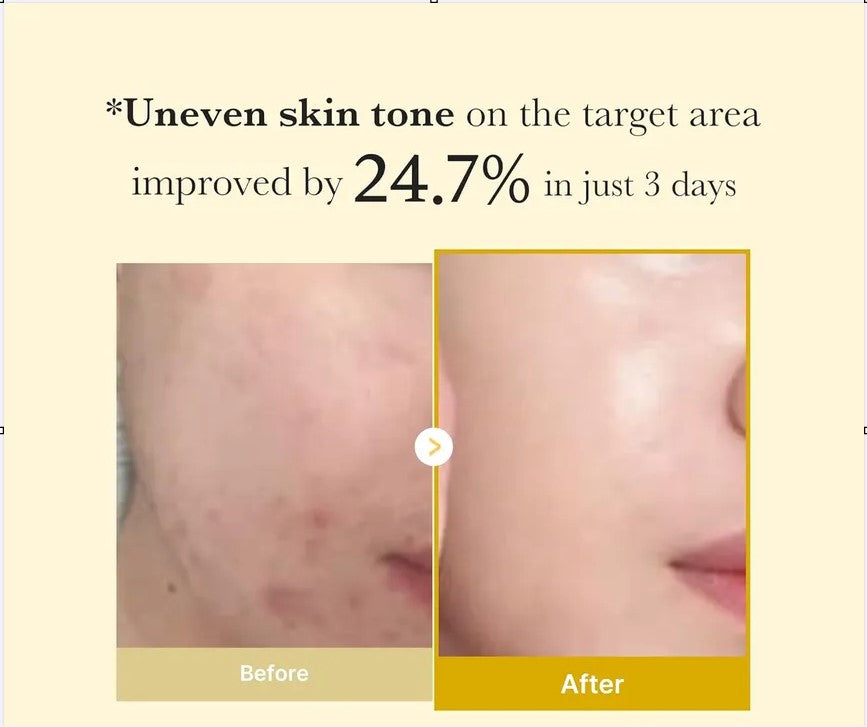 Le teint irrégulier sur la zone ciblée a été amélioré de 24,7 % en 3 jours.